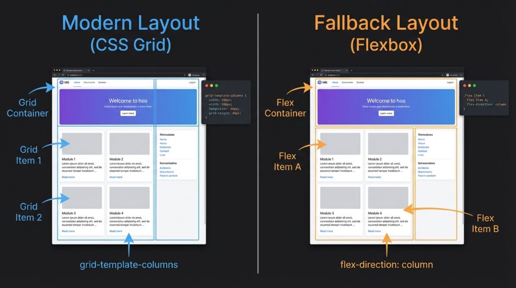 - The most effective way to use this is by providing a “fallback” layout for older browsers and an “enhanced” layout for those that support newer features like